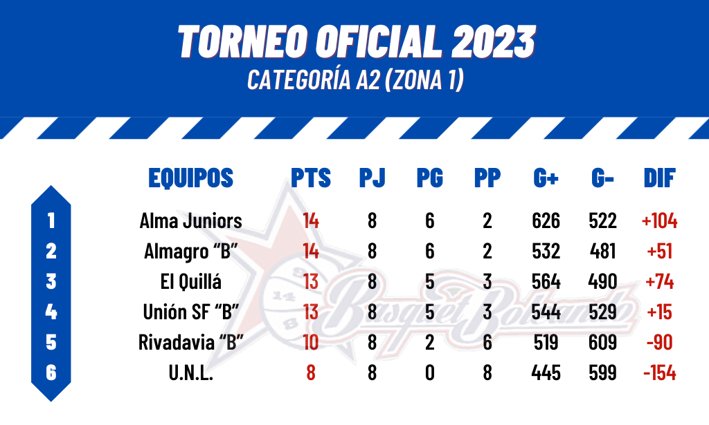 Alma Juniors (92): Tomas García 18; Francisco Garzia 15; Facundo Rittiner 10; Joaquín Bendahan 4; Joaquín Rittiner 21 (FI); Emanuel Longoni 3; Mariano Maine 4; Francisco Navarrete 13; Nicolas Nescier 2; Franco Christen 2. DT: Facundo Torres.