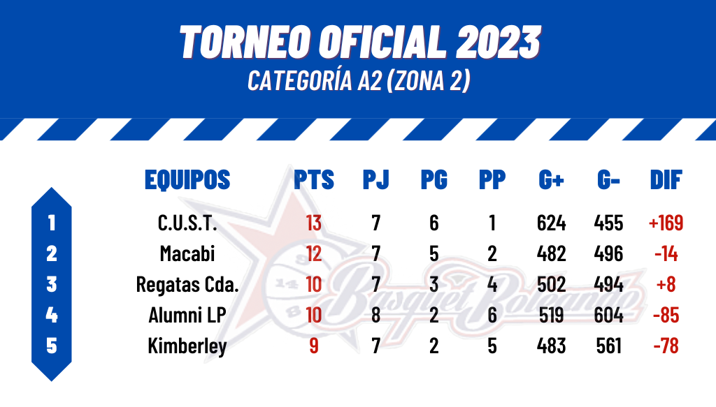 Regatas Cda (68): Lázaro Astulfi 18; Salvador Dip 8; Matías Aguilar 7; Luis Cerliani 5; Enzo Gauna 29 (FI); Matías Velasco 0; Mateo Marioni 0; Julián Olguín 1. DT: Fabián Righi.