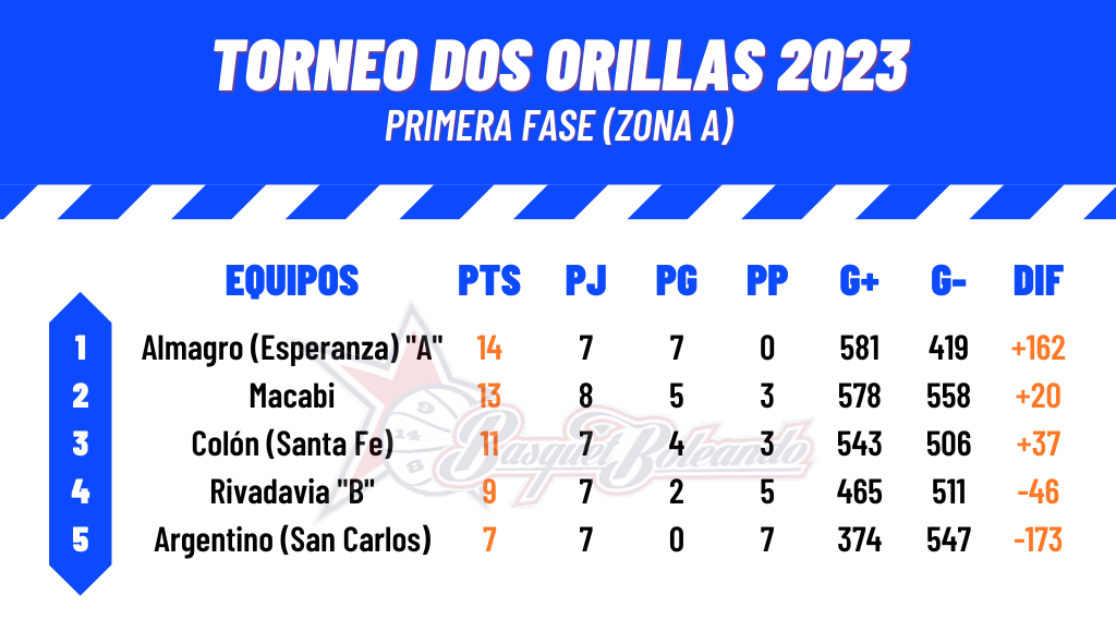 ALMAGRO DE ESPERANZA «A»: Matías Felcaro 18; Diego Collomb 8; Leonardo Strack 6; Federico Pfeiffer 9; Valentín Depetris 10 (FI) Pablo Spies 0; Mateo Spies 4; Enzo Durigon 18; Lucas Pérez 4; Facundo Viola 6; Iñaki Uriona 7; Lucas Andersson 4. DT: Leandro Spies.