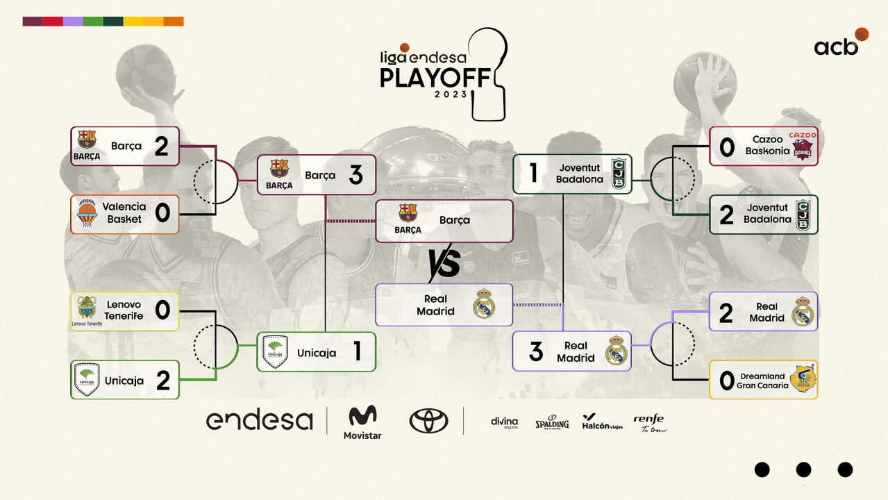 Habrá duelo clásico por el título de la Liga ACB entre Real Madrid y Barça, después de que ambos superaran a sus rivales, Joventut de Badalona y Unicaja de Málaga, por un global de 3-1.