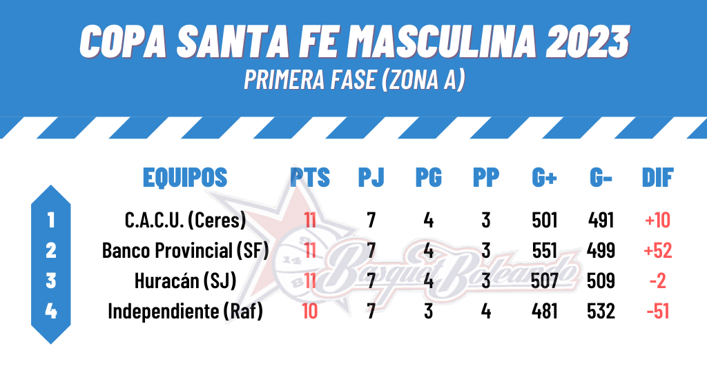 Banco Provincial le ganó 86-76 a Independiente de Rafaela como visitante en el marco de la séptima jornada de la zona A en la Copa Santa Fe Masculina. Los conducidos por Nicolás Fernándes Chamusco disputaron un gran encuentro en líneas generales. Dominó durante el primer tiempo, bajó su nivel en el 3C y el local pasó a liderar, pero rápidamente se acomodó en el segmento final y lo terminó cerrando de muy buena manera. Alejo Soria (16) y Alejo Suñe (16) fueron los máximos anotadores del conjunto de Guadalupe. Además, Huracán de San Javier derrotó 64-60 a Atlético Ceres Unión y, como era de esperarse, los clasificados se definirán en la última jornada.