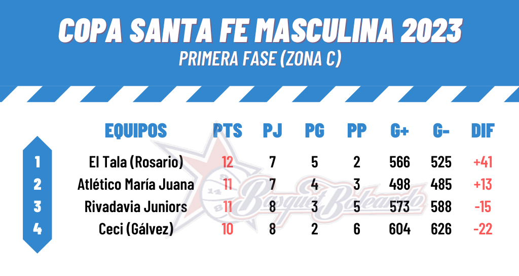 RIVADAVIA JUNIORS (75): Federico Isaia 4; Diego García 6; Mauricio D´amato 13; Sebastián Correnti 1; Francisco Spicchiali 4 (FI); Alejandro Forlín 9; Iván Basile 4; Gaspar Bontempi 11; Juan Bello 12; Estanislao Verga 11. DT: Hugo Nagel.