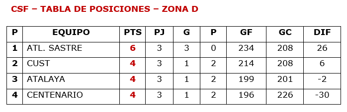Con este triunfo, el equipo de Diego Ferrari llegó a su tercera victoria en tres juegos disputados, es único puntero e invicto del Grupo D con 6 unidades. El conjunto ASB, por su parte, se mantiene con una victoria y ahora suma dos caídas. El domingo CUST jugará ante Rivadavia Juniors su duelo interzonal.