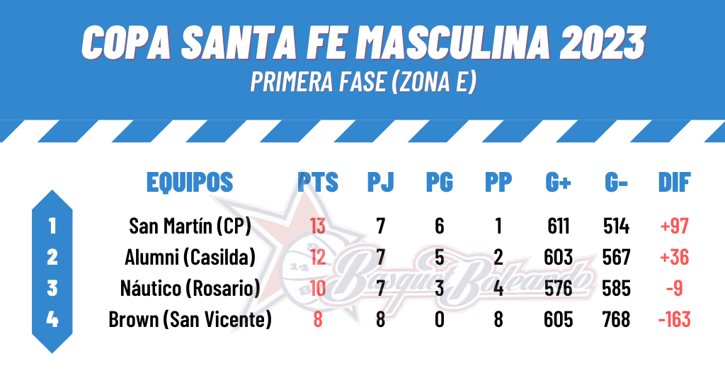 Atlético San Jorge (107): Santiago Schuvarz 24; Carlos Infante 43; Marcos Sosa 9; Ignacio Grilli 7; Joaquín Gómez del Conde 6 (FI); Exequiel Gaido 6; Matías Rippstein 8; Lautaro Pagano 3; Sebastián Schipper 1. DT: Roberto Vico. 4-6-9-14-15