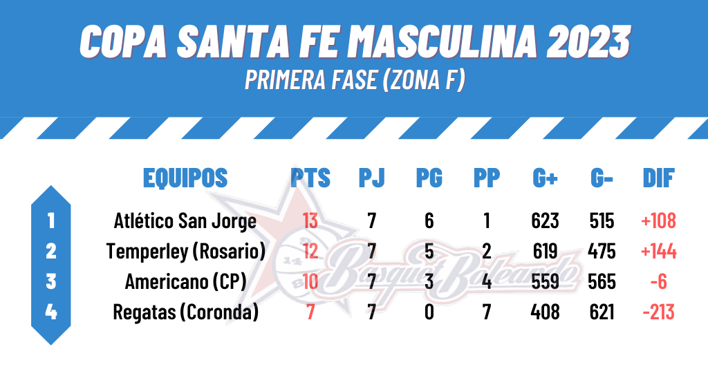 ATLÉTICO SAN JORGE (102): Santiago Schuvarz 23; Sebastián Schipper 0; Carlos Infante 22; Exequiel Gaido 19; Leonel Domínguez 0; Marcos Sosa 15; Lautaro Pagano 0; Matías Rippstein 0; Ignacio Grilli 8; Joaquín Gómez del Conde 15. DT: Roberto Vico.