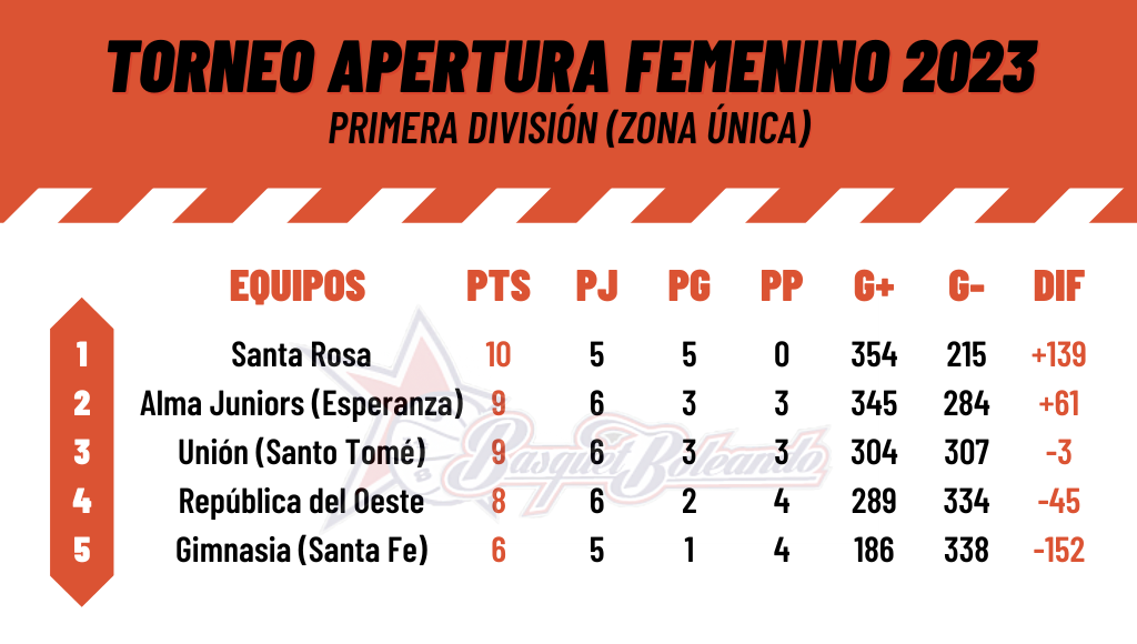 El combinado esperancino doblegó 58-33 a República del Oeste en Santa Fe en el choque que significó el cierre de la fecha 7. Las pupilas de Pablo González dominaron a partir del tercer cuarto y con un contundente 33-12 en el segundo tiempo se llevó un partido vital para sus aspiraciones. Eugenia Paira (8) y Brisa Gigena (7) lideraron las ofensivas de las locales mientras que Malena Baum (20) y Sofía Descalzo (15) fueron las goleadoras en las vencedoras.