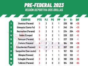 Por la tercera fecha de la Región CAB “Dos Orillas” del Pre Federal, Gimnasia y Esgrima sumó su segundo triunfo en fila. Al vencer a Echagüe por 73 a 63, con Gonzalo Sabatini como figura, autor de 20 puntos.
