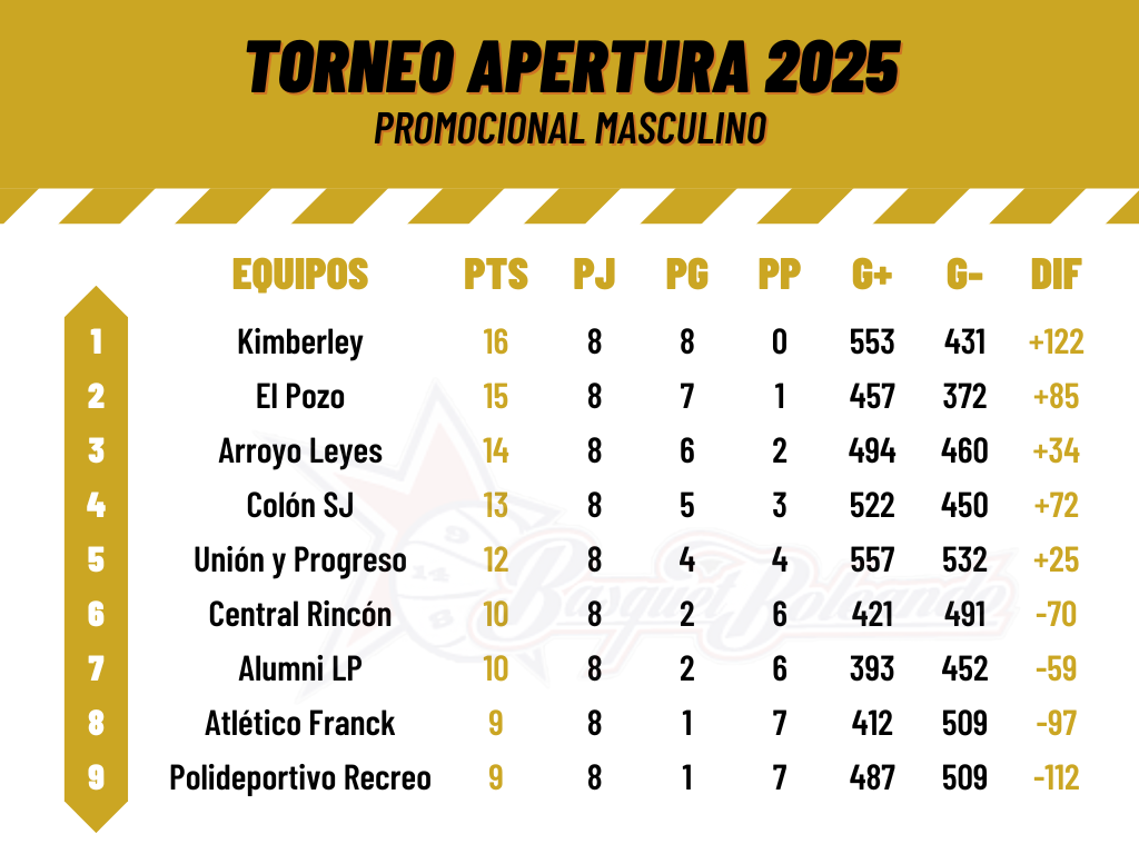 Kimberley (8-0) le ganó 59-50 a El Pozo (7-1) como local en el cotejo que enfrentó a los líderes invictos y que definió al mejor de la fase regular.